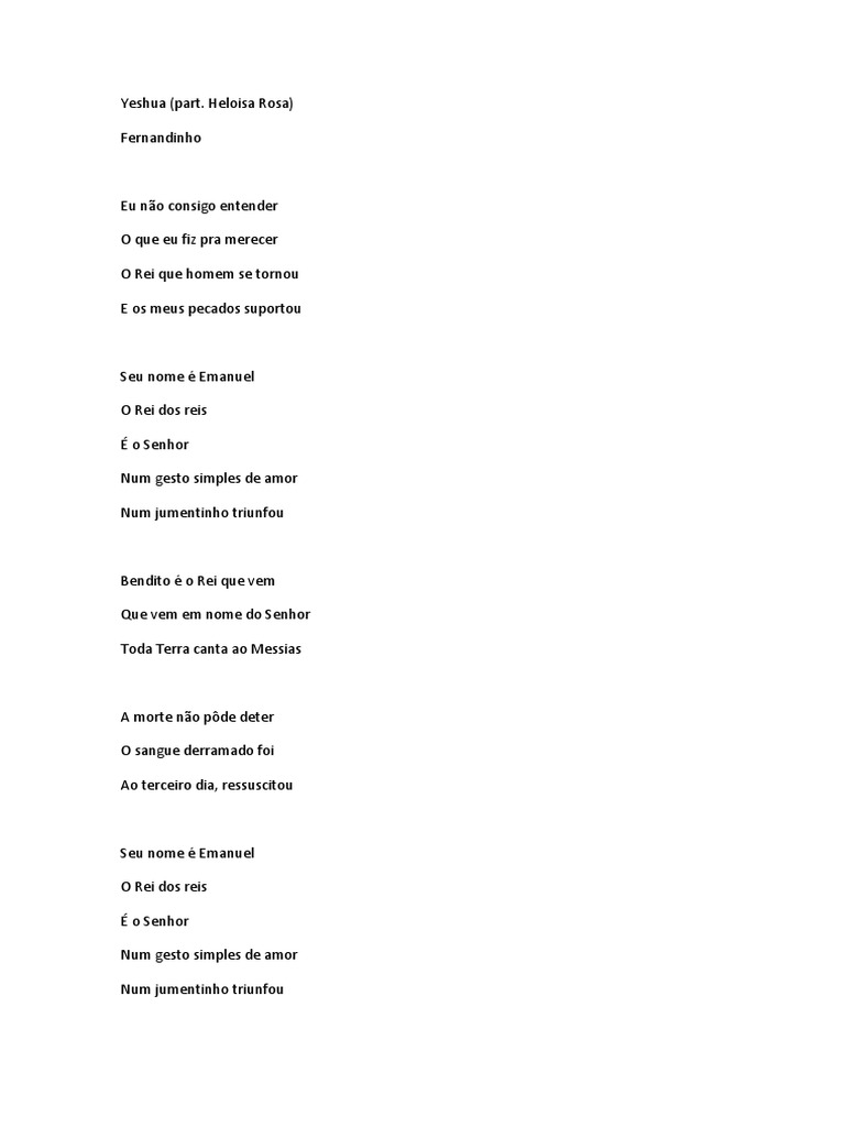 Heloisa Rosa Fernandinho Yeshua Letra from ytimg.googleusercontent.com Baixar musica da liloca hoyo hoyo. Baixar musica da heloisa feet fernandinho : Você também pode coletar listas de reprodução e baixar as músicas que desejar quando quiser. You can choose the yeshua (part. Também coletamos e carregamos informações da lista de. Please download one of our supported browsers. O escudo, do voz da verdade, é também uma das músicas evangélicas mais tocadas deste ano nas rádios de todo o brasil. Download songs and listen to y… baca selengkapnya baixar musica da heloisa feet fernandinho.